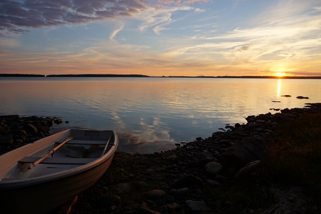 Sköna sommarkvällar, när andningen blir lugnare och stegen långsammare. När man kan sitta och titta ut över vattnet i evigheter. Stå ut med myggen lite extra länge, bara för att solnedgången är så vacker. Lyssna på vågorna som kluckar mot stenarna.