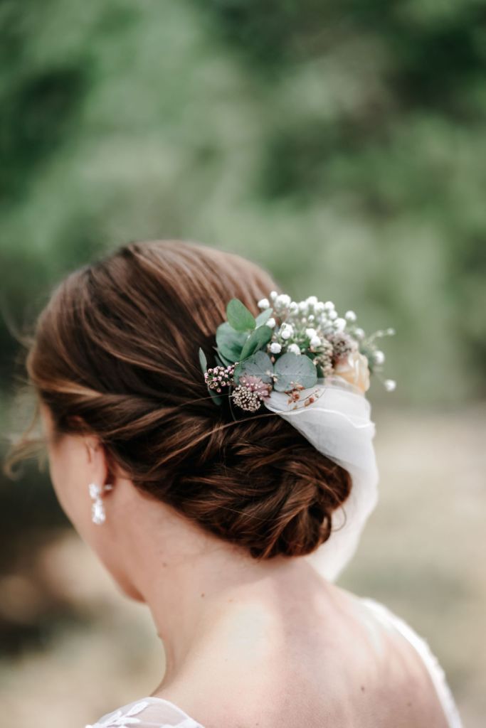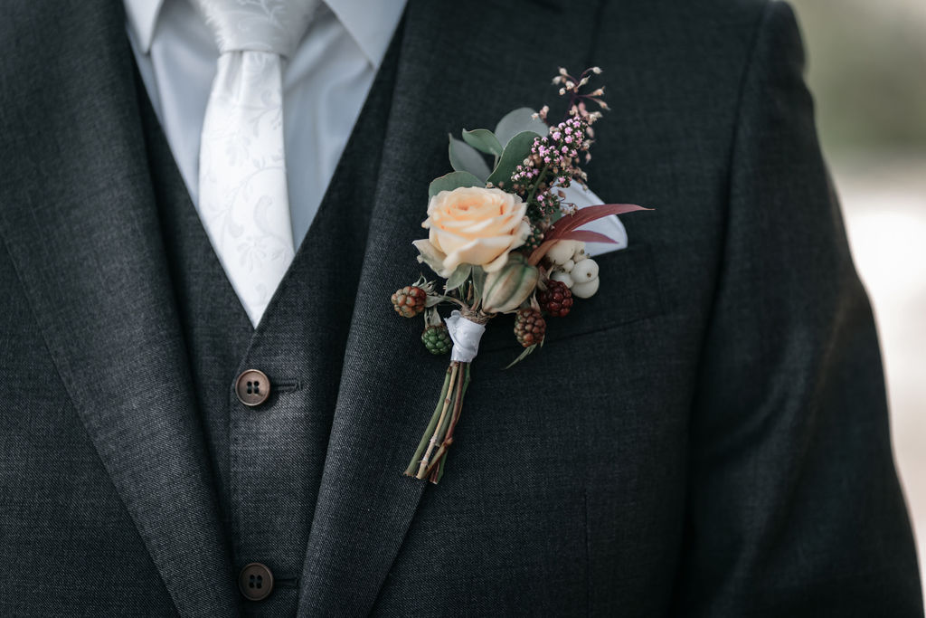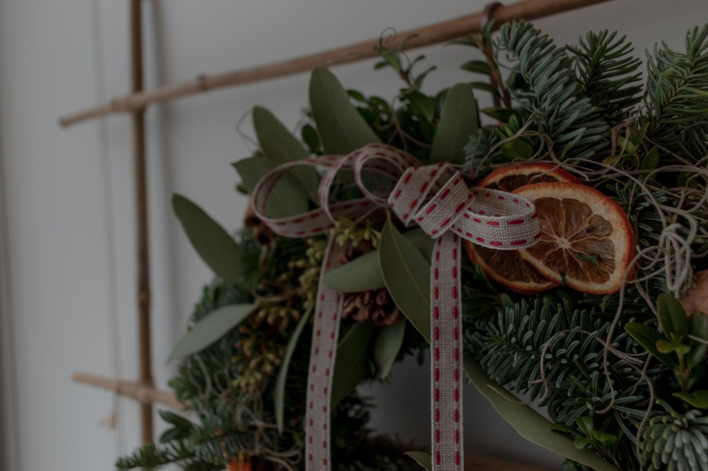 Gjorde en rosett av ett grått bomullsband som jag hade liggande hemma och fäste längst upp på kransen.