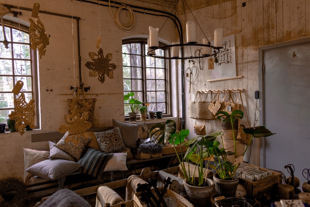 På Wiksfors bruk finns flera butiker med både kläder, inredning, bruksföremål, blommor och lokalproducerade skafferivaror. Vi strosade runt i butikerna och njöt i det fina höstvädret. Jag passade på att köpa ett nytt glas till vår oljelampa då det gick sönder i våras. Till lunch åt vi Magazinets goda våfflor!